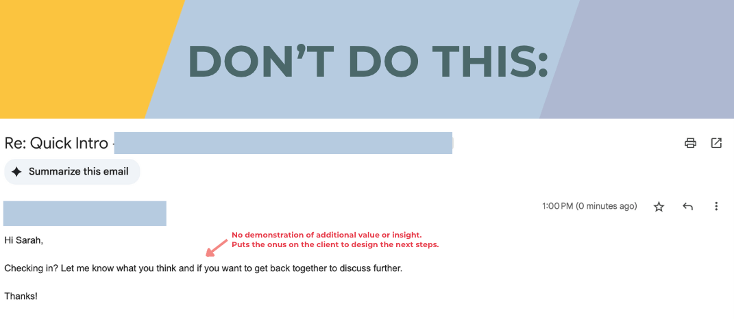 A few months ago, I had what felt like a slam dunk business development call. A trusted contact made the intro, I had an energizing 2.5-hour conversation with the CEO, and I turned around a proposal the very next day.